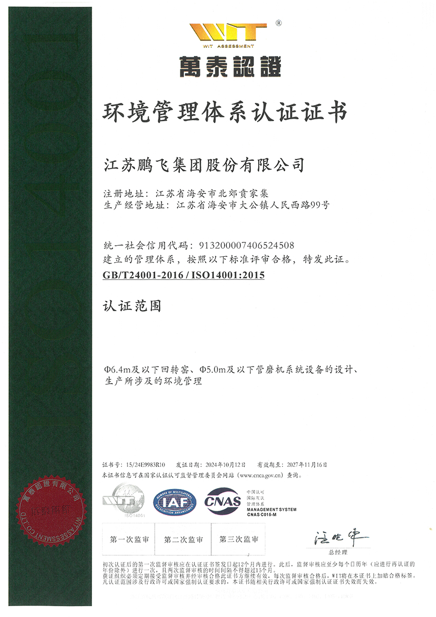 環(huán)境管理體系認(rèn)證證書