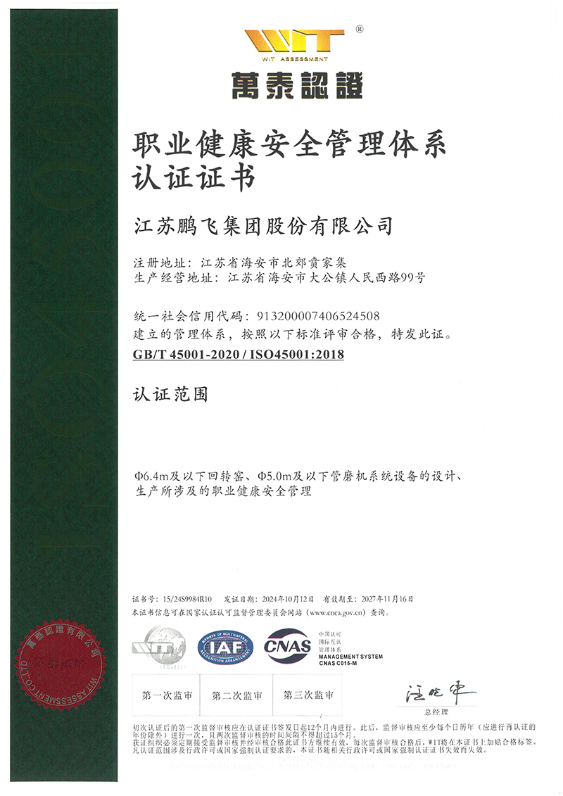 職業(yè)健康安全管理體系認(rèn)證證書