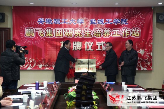 12月10日,由鵬飛集團聯(lián)合安徽理工大學、鹽城工學院創(chuàng)建的研究生培養(yǎng)工作站在江蘇鵬飛集團公司舉行揭牌儀式,江蘇鵬飛集團副總經(jīng)理周延標介紹了與安徽理工大學、鹽城工學校產(chǎn)學研合作情況,鹽城工學院邵榮副校長、安徽理工大學王其東副校長對研究生培養(yǎng)工作站的成立提出新的工作要求,大公鎮(zhèn)政府、海安縣科技局領(lǐng)導做了重要講話,鹽城工學院邵榮副校長、王其東副校長、鵬飛集團副總經(jīng)理周延標在三方合作協(xié)議上簽字,三方共同為鵬飛集團研究生工作站揭牌,會議結(jié)束后,大家參觀了江蘇鵬飛節(jié)能環(huán)保產(chǎn)業(yè)技術(shù)研究院和鵬飛集團全面建成投產(chǎn)后的北廠新區(qū)。