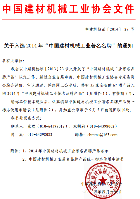 江蘇鵬飛集團(tuán)榮獲中國(guó)建材機(jī)械工業(yè)著名商標(biāo)
