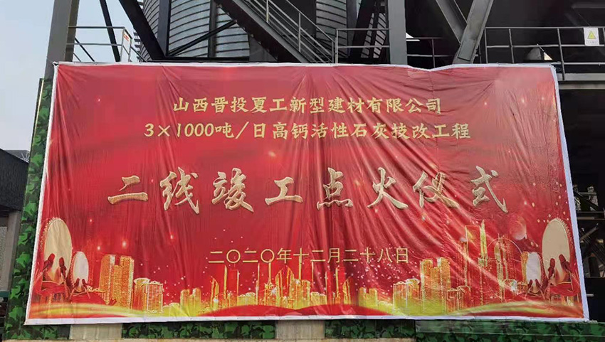 12月28日,由江蘇鵬飛集團制造的山西晉投夏工3×1000tpd高鈣活性石灰回轉窯生產(chǎn)線主機設備二線點火成功