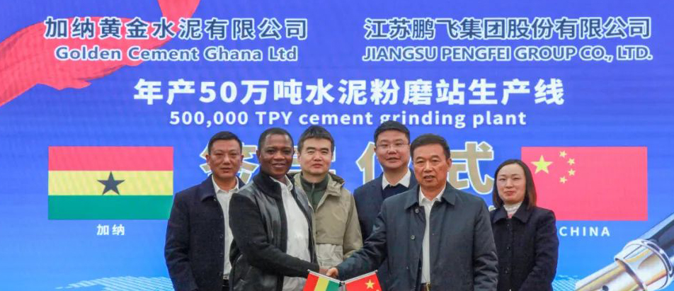 董事長王家安、副總經(jīng)理施鵬宇共同出席加納黃金水泥有限公司粉磨站簽約儀式