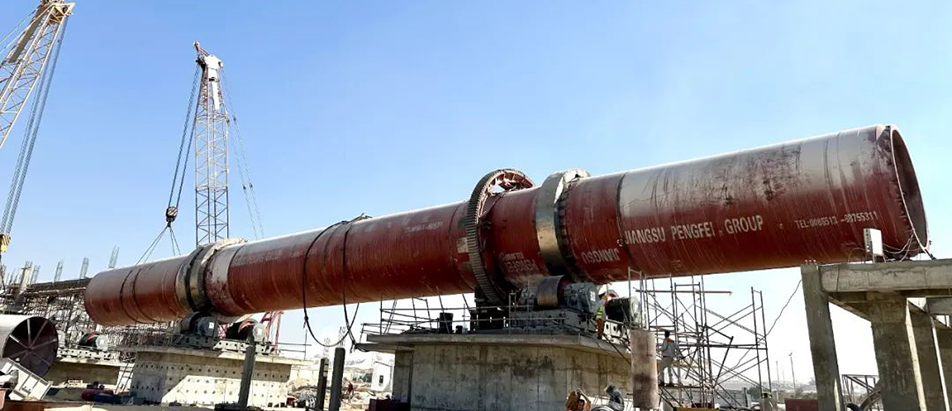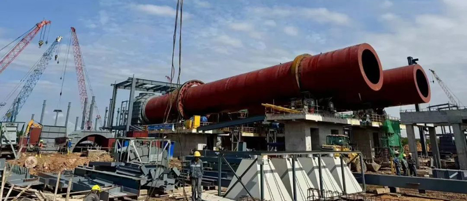 鵬飛集團(tuán)生產(chǎn)的Φ5.5x115m 煅燒窯(2臺(tái)套)、Φ5.5x(50+3)m 烘干窯(2臺(tái)套)在恩菲(印尼紅土鎳礦)項(xiàng)目安裝現(xiàn)場