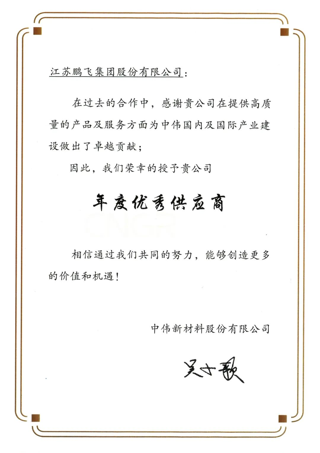 海外項(xiàng)目感謝信 | 年度優(yōu)秀供應(yīng)商
