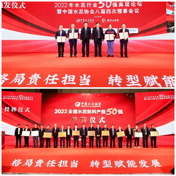 會議期間還舉辦了隆重的協(xié)會新增補(bǔ)變更副會長、新增常務(wù)理事單位頒發(fā)證書儀式以及2022年全國水泥熟料產(chǎn)能50強(qiáng)授牌儀式。