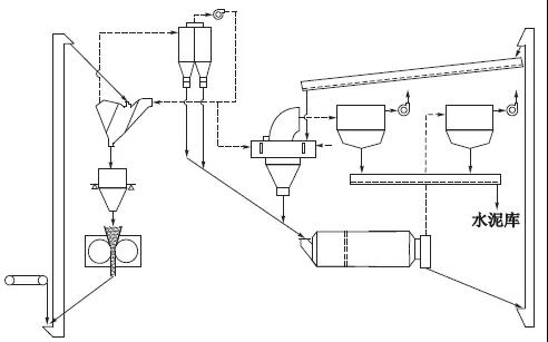 圖1 改造前雙閉路聯(lián)合粉磨系統(tǒng)工藝流程示意