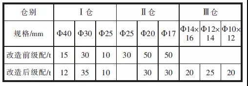 表2 改造前后磨內(nèi)研磨體級(jí)配