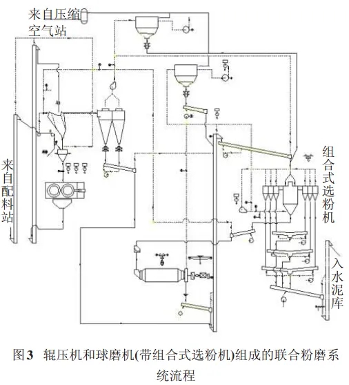 3 輥壓機和球磨機(帶組合式選粉機)組成的聯(lián)合粉磨系統(tǒng)