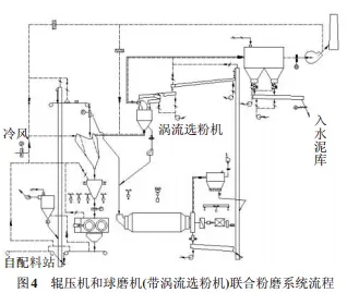 5 輥壓機和球磨機(帶渦流選粉機)組成的聯(lián)合粉磨系統(tǒng)