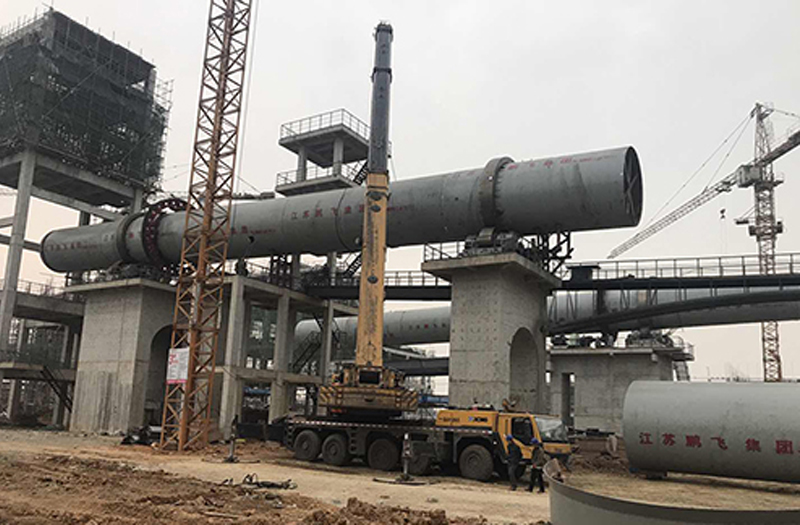 轉化焙燒:鋰輝石精礦從精礦庫人工送至斗式提升機提升至精礦倉,再經(jīng)圓盤給料機和螺旋給料機加入碳酸鋰回轉窯窯尾,利用窯尾預熱段高溫氣體干燥精礦,精礦在煅燒段約1200℃左右的溫度下進行晶型轉化焙燒,由α型(單斜晶系,密度3150kg/m3)轉化為β型鋰輝石(四方晶系,密度2400kg/m3,即焙料),轉化率約98%。